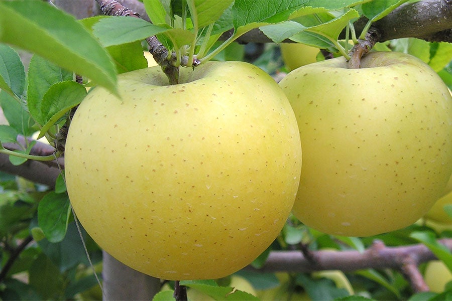 長野県が年月をかけて育成した名前の通り黄色の品種で、「ゴールデンデリシャス」と「千秋」の交配品種です。パリッとした歯ざわりの良さ、甘味と酸味のバランスが絶妙なために近年人気急上昇中のりんごです。
