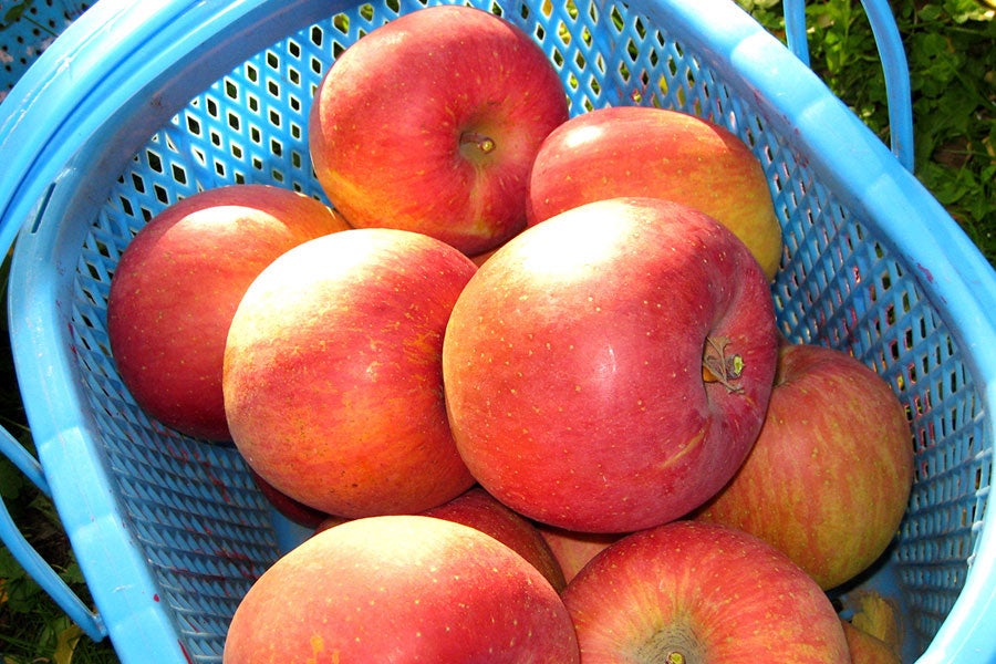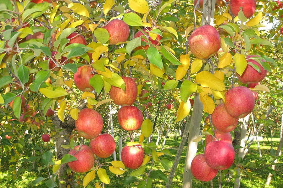 サンふじの蜜は、人工的なものではなく、光合成によって作られるソルビトールという糖質アルコールです。ハチミツ色をしているので「蜜」と呼ばれています。蜜は収穫後少しずつ果肉に吸収され、12月下旬から1月にかけて見えなくなります。