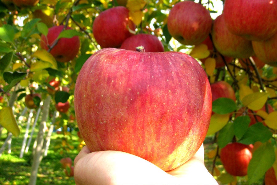 マルヒ農場のりんごは収穫時にヘタが取れたものが混ざる場合がございます。