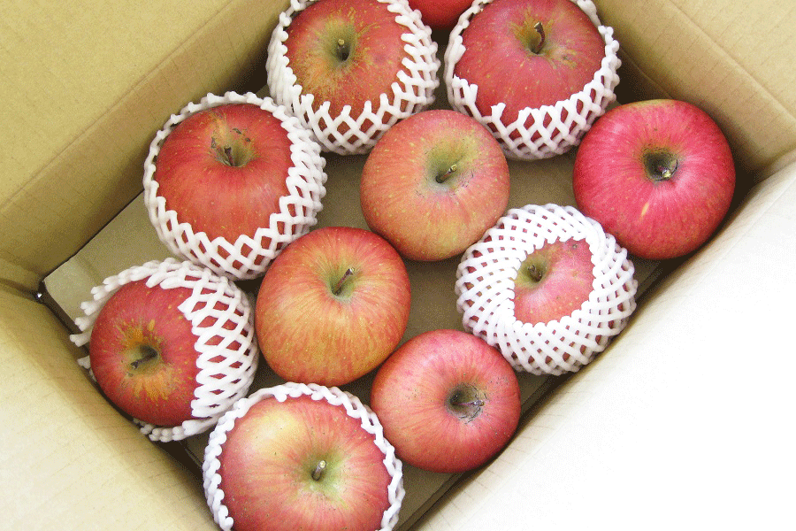 サンふじの蜜は、人工的なものではなく、光合成によって作られるソルビトールという糖質アルコールです。ハチミツ色をしているので「蜜」と呼ばれています。蜜は収穫後少しずつ果肉に吸収され、12月下旬から1月にかけて見えなくなります。