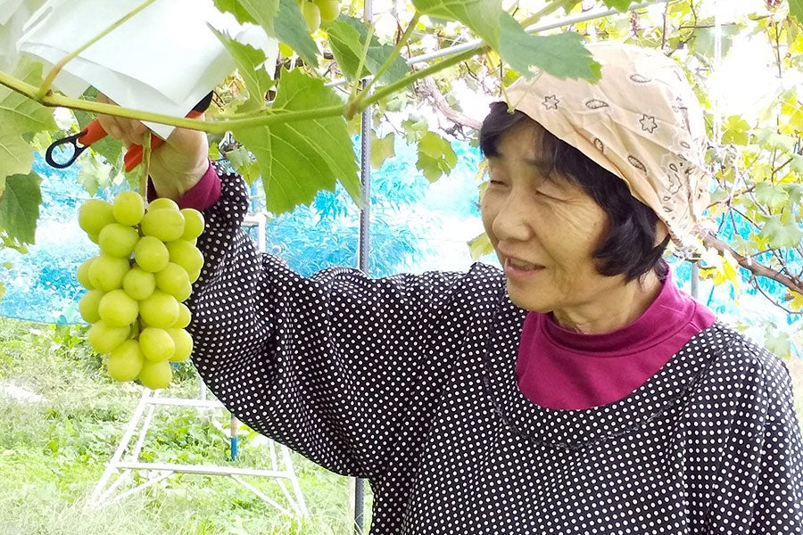 ぶどう作り30年、カラダ、こころ、弾む歓ぶ、つがね農園のシャインマスカット、お届けできる日を楽しみにしております。
