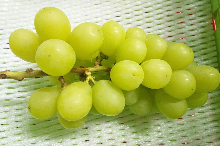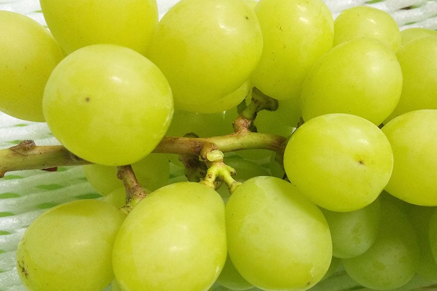「安芸津21号」と「白南」の交配品種です。糖度が高く、マスカット香があります。種なしで皮ごと食べられます。