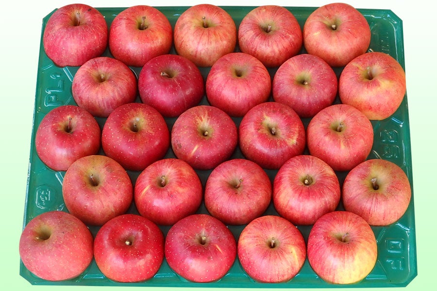 サンふじの蜜は、人工的なものではなく、光合成によって作られるソルビトールという糖質アルコールです。ハチミツ色をしているので「蜜」と呼ばれています。蜜は収穫後少しずつ果肉に吸収され、12月下旬から1月にかけて見えなくなります。