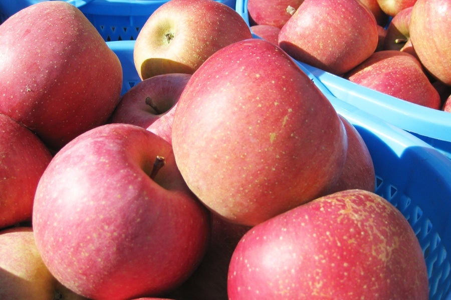 丸茂ファームのりんごは、化学肥料の使用量、農薬の使用回数を30%以上削減して栽培しました。