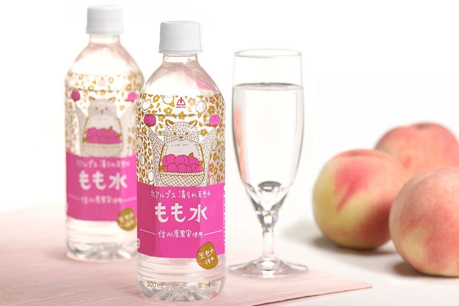 長野県産もも果汁を使用した甘さ控えめのフレーバーウォーター。おいしい水にこだわった「安曇野の水仕立て」です。