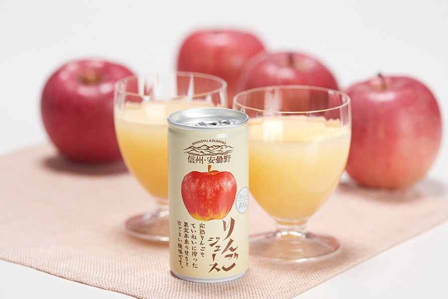 信州安曇野地域のりんご本来の甘さと程よい酸味がマッチした、風味豊なおいしさがギュギュッと詰まったストレート100%のりんごジュースです。