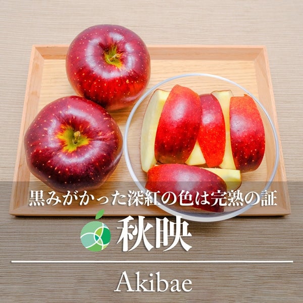 秋映(あきばえ)は、千秋(せんしゅう)とつがるを交配して誕生した長野県生まれのりんごで、1993(平成5)年に品種登録されました。同じく長野県のオリジナル品種である、シナノスイート、シナノゴールドと共に「りんご三兄弟(R)」と呼ばれています(ちなみに秋映は長男です)。