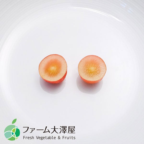 鮮やかな紅色の赤系ぶどうで、シャインマスカットの特徴を引き継ぐ、皮ごと食べられる種なしぶどうです。パリッとした食感で、シャインマスカットよりも皮が気になりません。