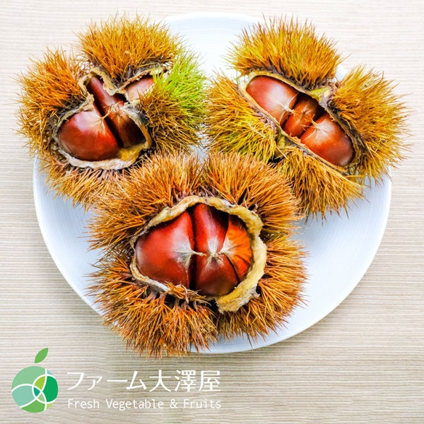 【小布施栗】 小布施栗(おぶせぐり)は、栗の町として有名な長野県小布施町で栽培されています。江戸時代には紀州みかんや甲州ぶどうと共に“徳川三大果”とうたわれて将軍家へ献上されていました。 小布施町で栗の栽培がはじまったのは、諸説ありますが室町時代からと言われています。昼夜の寒暖差が大きく水はけのいい酸性の土壌が、甘みが強く濃厚な味の栗を育てます。 ファーム大澤屋が厳選した小布施栗のこだわりは、おいしい栗を育てるためにさまざまな有機質肥料を使った土づくり。樹上で完熟し、自然に木から落ちた栗のみを収穫して出荷しています。 【保存方法】 商品到着後の常温保存は避けてください。水分が蒸発したり虫が発生する可能性が高くなります。調理するまで必ず冷蔵・冷凍で保管しお早めにお召し上がりください。 【ファーム大澤屋】 長野県産を中心とした、厳選された鮮度の高いフルーツや野菜のことならファーム大澤屋にお任せください。