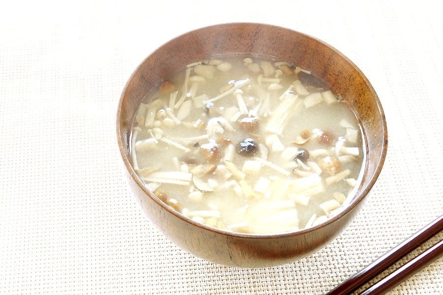 原材料名:えのき茸(長野県)、米みそ、ぶなしめじ(長野県)、なめこ(長野県)、デキストリン、かつおだし、昆布エキス、椎茸エキス、魚介エキス、でん粉、酵母エキス、食塩、小麦粉、乳酸菌粉末/酸化防止剤(V.E)、(一部に小麦・大豆を含む)