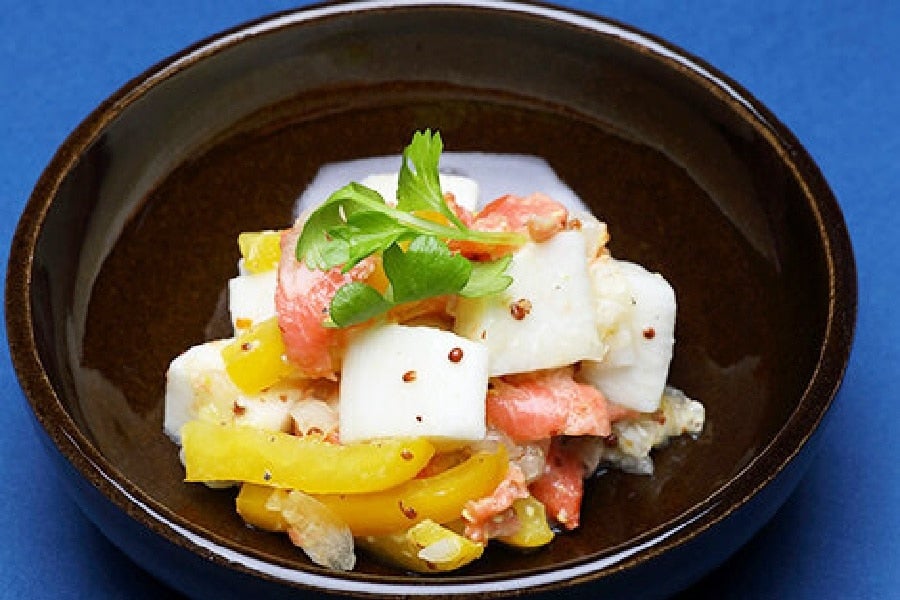 生で切って食べるとサクサクした歯ごたえですが、すりおろすとよく粘ります。デンプン分解酵素やタンパク質、ミネラルを含んだ野菜です。
