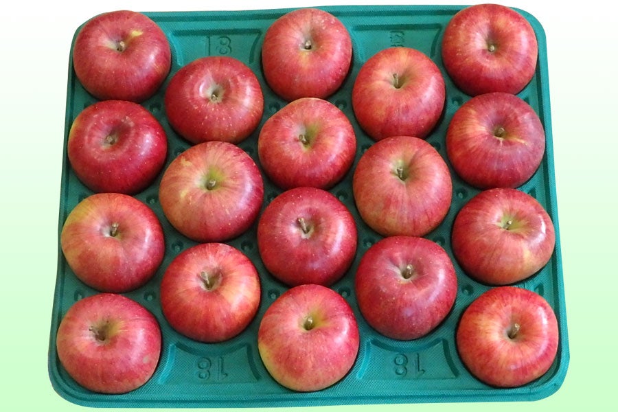 スマートフレッシュ技術は、りんごの新しい鮮度保持技術です。りんごが老化するときに発生するエチレンガスを抑制しています。スマートフレッシュは環境にやさしく果実の表面や内部に残りません。