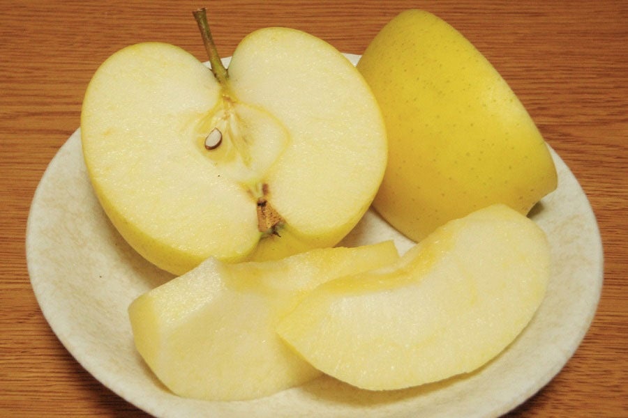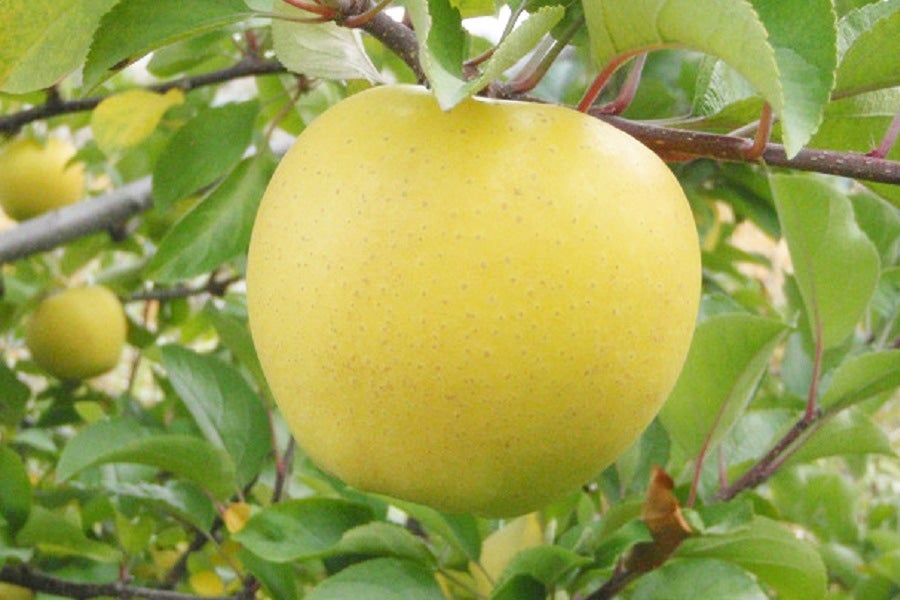 長野県が年月をかけて育成した名前の通り黄色の品種で、「ゴールデンデリシャス」と「千秋」の交配品種です。甘味と酸味のバランスが絶妙なために近年人気急上昇中のりんごです。りんご三兄弟(秋映・シナノスイート・シナノゴールド)の中で最後に収穫される品種です。