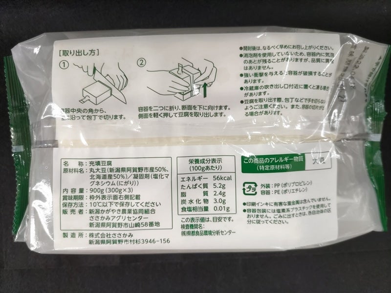 【原材料名】 丸大豆(新潟県阿賀野市産50%・北海道産50%)、凝固剤(塩化マグネシウム「にがり」)