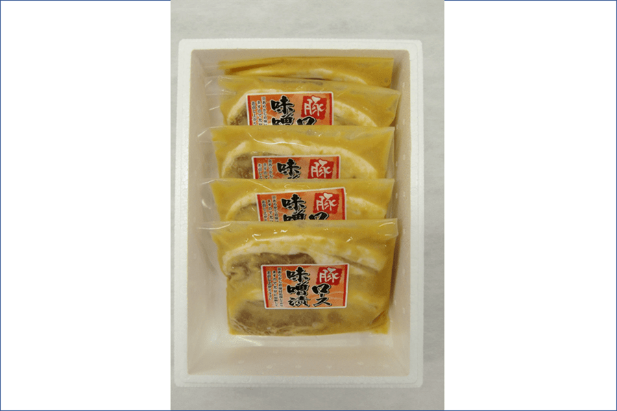 豊かな自然の中で飼育された新潟県産の豚ロース肉 を特製の味噌ダレに漬け込んだ、豚肉の味噌漬けです。