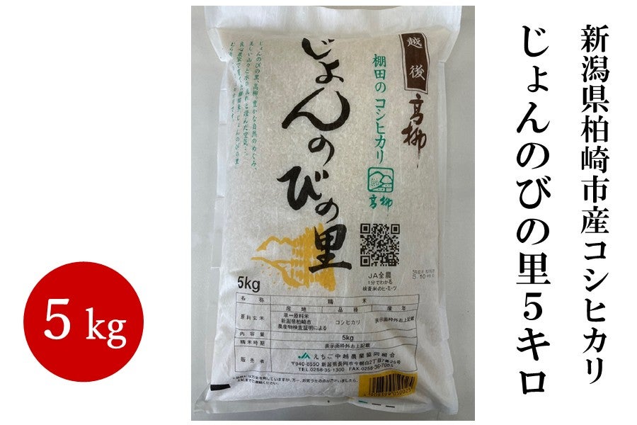 【大決算セール】柏崎市産 米 じょんのびの里コシヒカリ 5kg 令和7年産