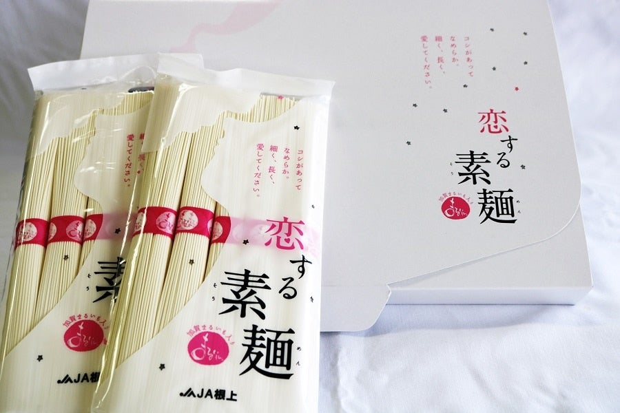 ☆☆加賀丸いも入素麺☆☆ 石川県根上地方で栽培された、強い粘りが特徴の「加賀丸いも」を練りこんだ素麺です。弾力とコシの強さが魅力的な素麺です。 ◆恋する素麺◆ [原材料名] 小麦粉(国内製造)、食塩、食用植物油脂、山いも粉末 [内容量] 250g [保存方法] 直射日光、湿気を避けて、常温で保存してください。 [賞味期限] 枠外記載(製造より24ケ月) [販売者] 根上農業協同組合 石川県能美市大成町リ40番地 <注意事項> *着日指定は承れませんので、予めご了承願います。 *コンビニ決済・ATM決済を選択されたお客様は、ご入金にて注文受付となりますのでご注意下さい。