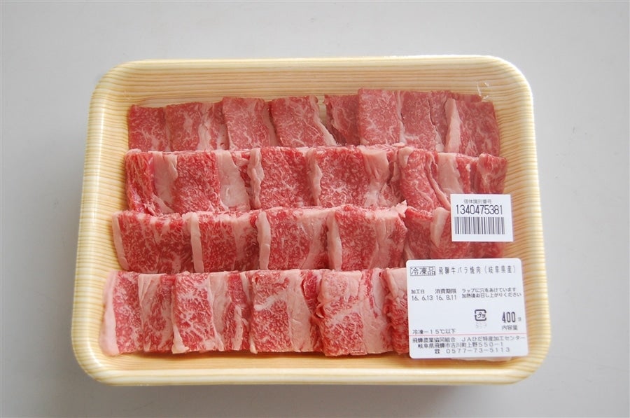 岐阜県内で14ヶ月以上肥育された黒毛和種で、日本食肉格付協会が実施する枝肉格付で肉質等級5等級、4等級、3等級に認定された牛肉のみに与えられる銘柄です。