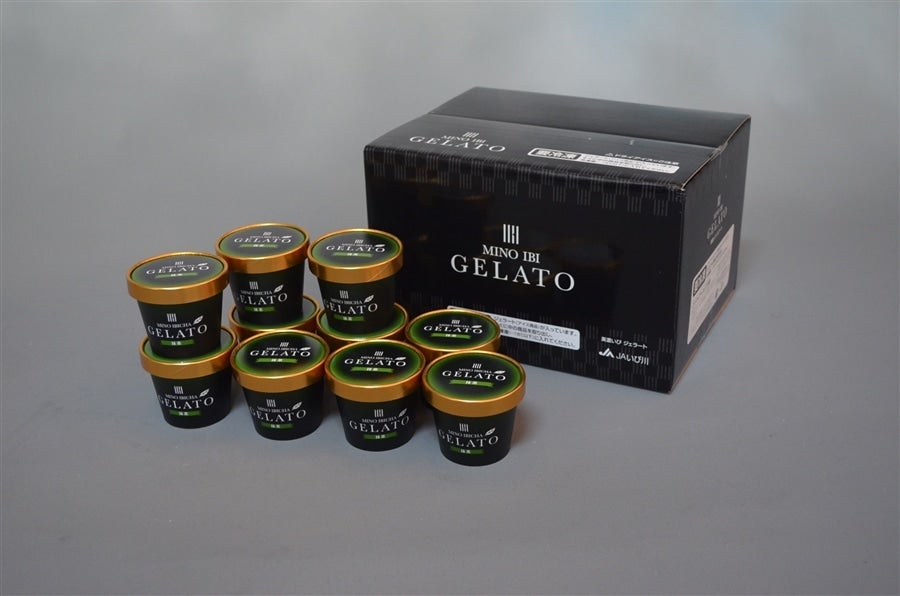 抹茶ジェラート種類別:アイスミルク 無脂乳固形分 9.3% 乳脂肪分 5.5%原材料名:牛乳(北海道産)、グラニュー糖、生クリーム、抹茶(岐阜県揖斐郡産100%)、 ぶどう糖、脱脂粉乳/安定剤(増粘多糖類)栄養成分表示(100g当たり)/エネルギー169kcal たんぱく質4.5g 脂質6.8g 炭水化物23.0g 食塩相当量0.1g