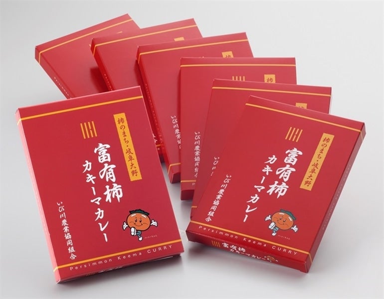 岐阜県揖斐郡の特産、柿の王様「富有柿」を一年中楽しめるようピューレに加工してキーマカレーに使用した商品を辛口・甘口のセットでお届けします