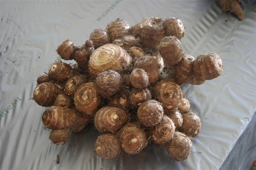 丸くて大きないもをつける株の選別を繰り返すことで真ん丸で粒揃いのサトイモが誕生。