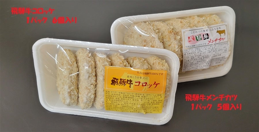 岐阜のブランド牛「飛騨牛」を使用した上品な旨みが味わえるコロッケとメンチカツです!!