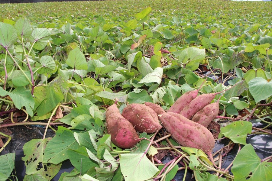 静岡県三島市佐野地区では、水はけの良い火山灰土と保肥力のある赤土が混じり合い、甘藷の生産に最適です。そのため、三島市佐野地区で生産される三島甘藷はホクホク感としっとり感を同時に味わえるのが特徴です。その昔、全国の甘藷相場を決めるほどのブランドいもでした。
