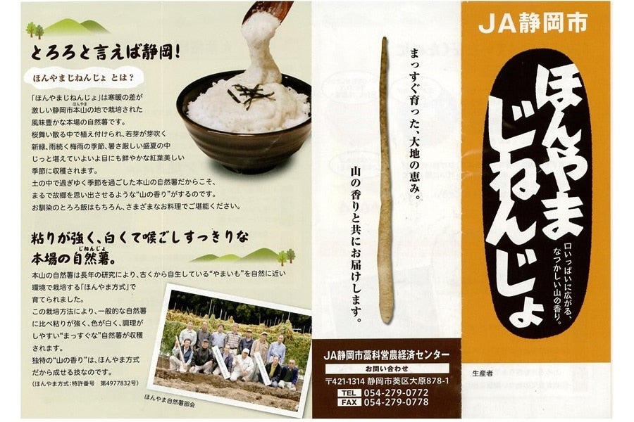 JA静岡市より、藁科地区で栽培されている『ほんやま自然薯』は、藁科地区の生産者13人の会員からなる