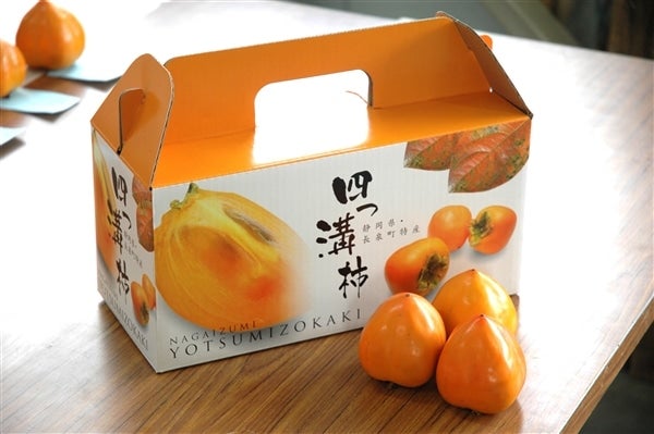 四ッ溝柿は、甘柿よりやや小さめの渋柿ですが、独自の渋抜きをしてあるので、独特の深味のある甘みがあり果肉は柔らかい味わいです。日が経つにつれて柔らかさが増して、透き通ったべっ甲色で果肉がとろけるような状態になってもおいしさは変わりません。