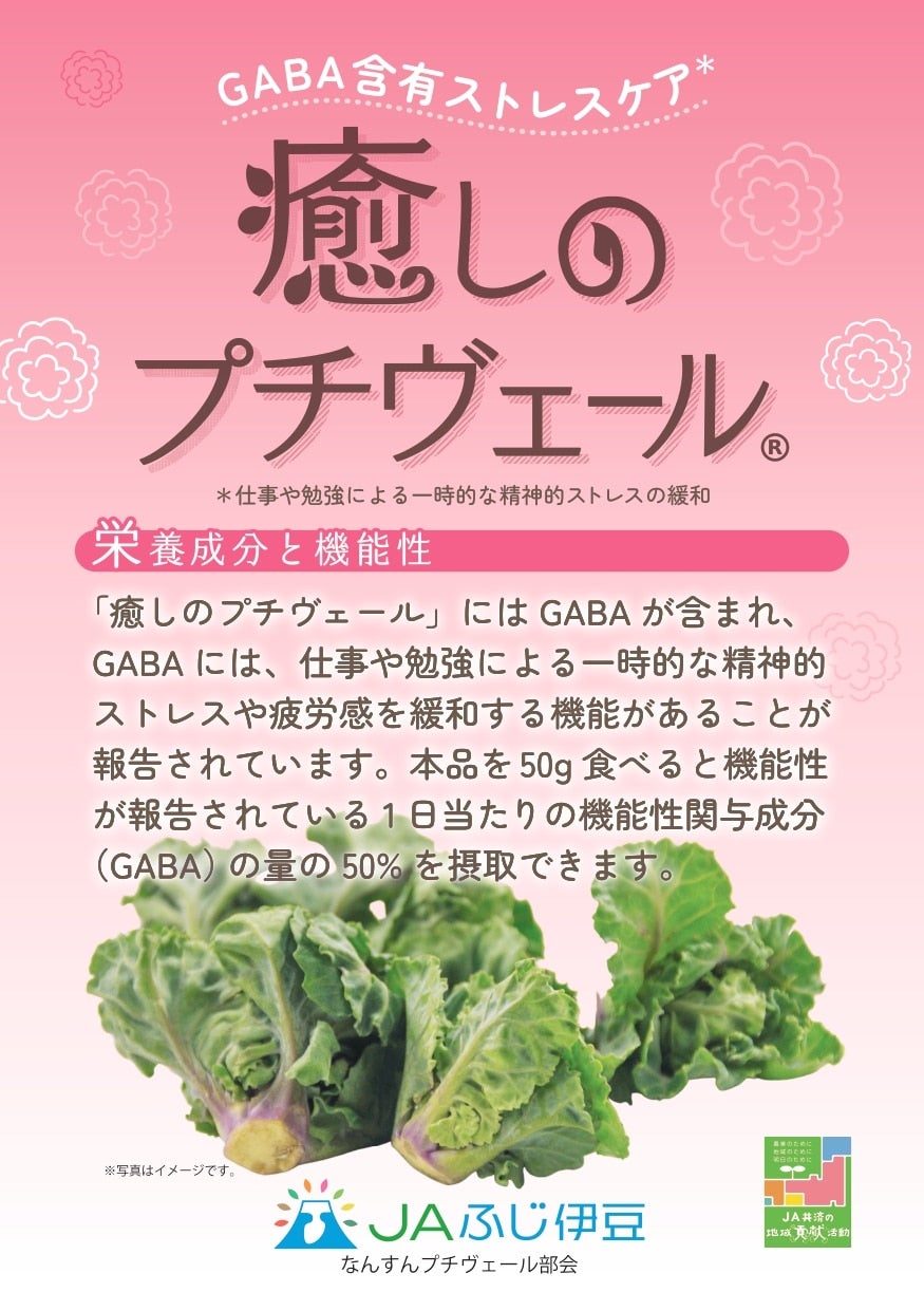 「癒しのプチヴェール」にはGABAが含まれ、GABAには仕事や勉強による一時的な精神的ストレスや疲労感を緩和する機能があることが報告されています。