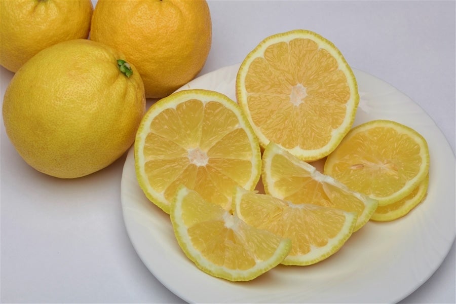 レモンのように見えますが、マイルドな酸味と程よい甘さがあり、皮を剥いてをのまま食べることができます。