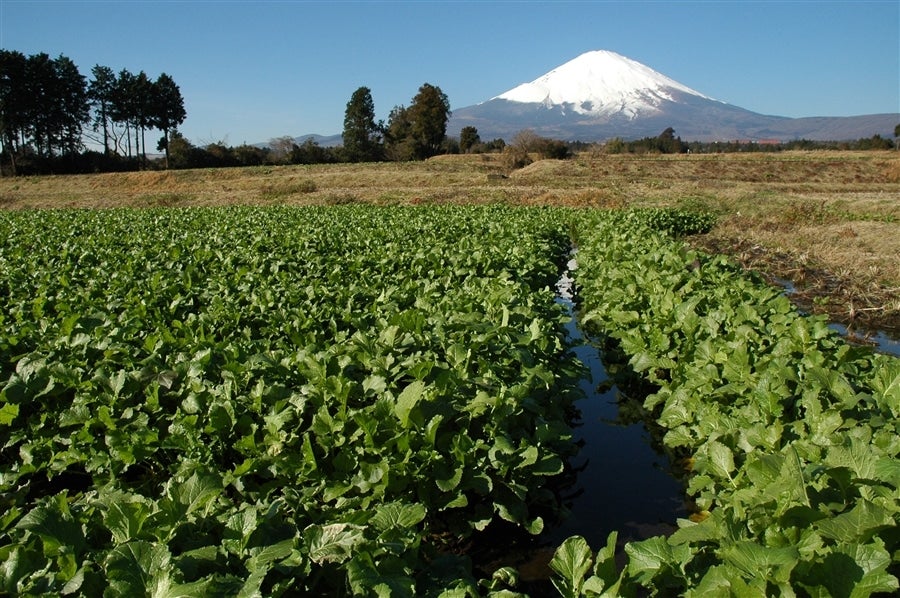 「水かけ菜」は富士山の湧水を利用し、主にもち米を栽培した田を利用し栽培されます。