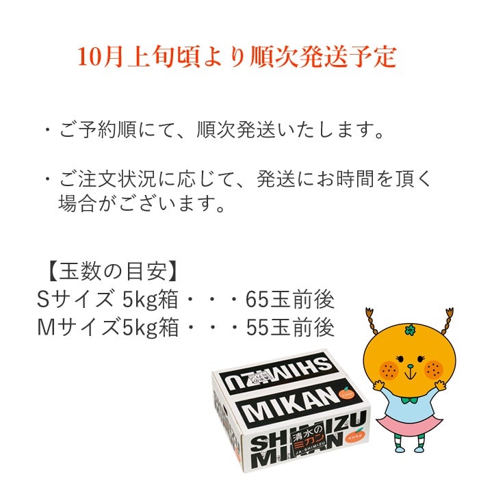 清水のみかん ゆら早生 清水の柑橘のスタートを告げる極早生みかん の中でも甘みがあり、早生特有のインパクトの ある酸味と甘み特徴のみかんです。 近年人気上昇中の極早生ミカンです。 本商品はMサイズ5kg箱です。 1箱に55玉前後入りです。 直径は6.1cm〜6.7cmくらいの大きさです。 ※参考値ですので玉数を保証するものでは ありません。