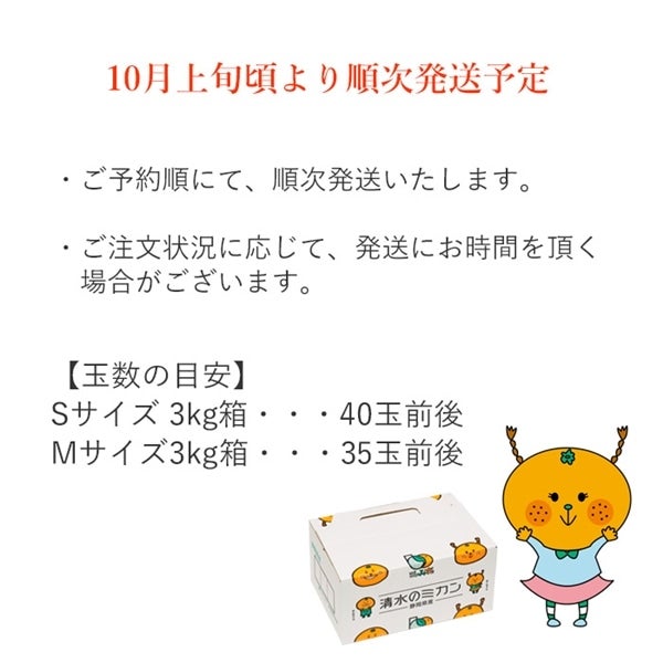 清水のみかん ゆら早生 清水の柑橘のスタートを告げる極早生みかん の中でも甘みがあり、早生特有のインパクトの ある酸味と甘み特徴のみかんです。 近年人気上昇中の極早生ミカンです。 本商品はSサイズ3kg箱です。 1箱に40玉前後入りです。 直径は5.5cm〜6.1cmくらいの大きさです。 ※参考値ですので玉数を保証するものでは ありません。