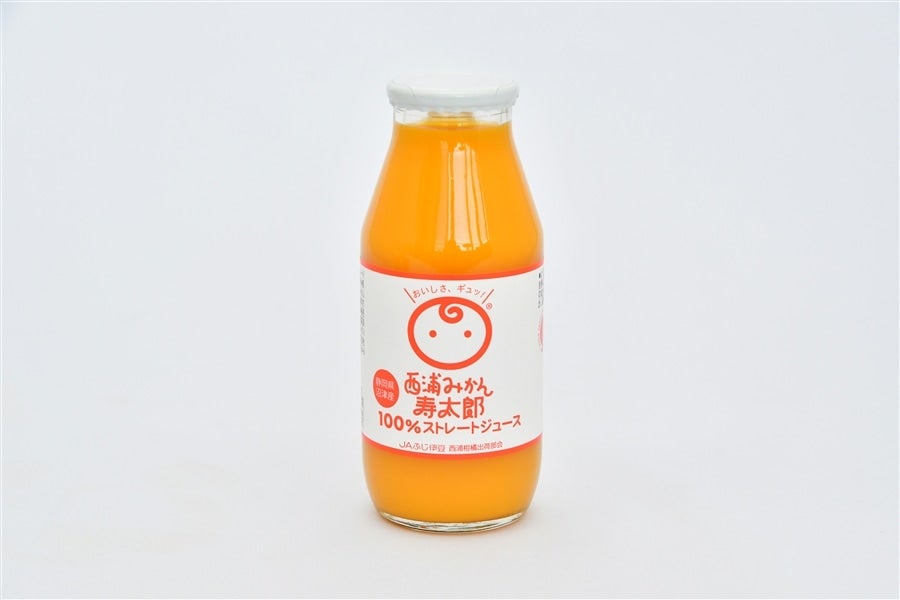沼津市西浦生まれの「西浦みかん寿太郎」を“おいしさギュッ!”とそのまま搾った100%ストレートジュースです。