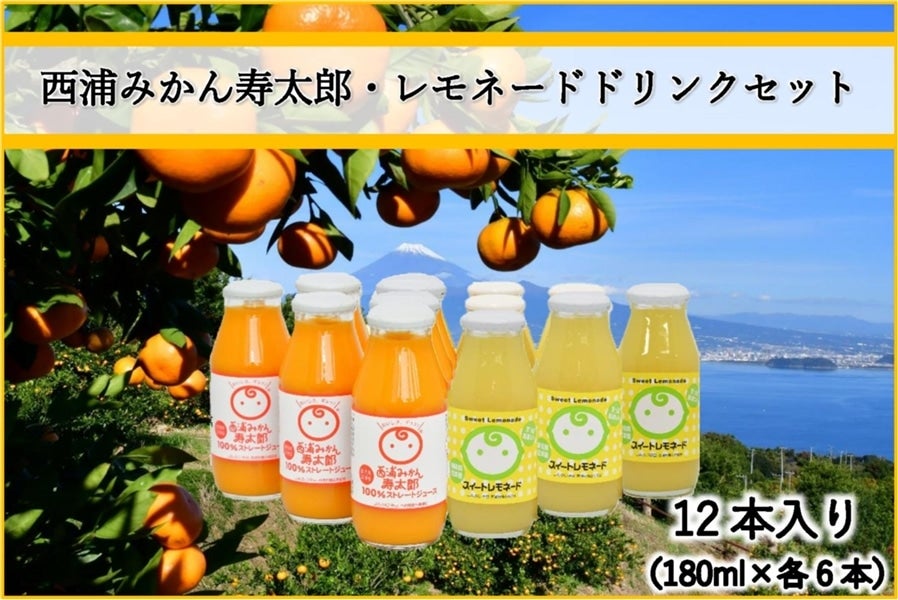 大人気の西浦みかん寿太郎100%ストレートジュース(180mL)とスイートレモネード(180mL)をセットにしました!