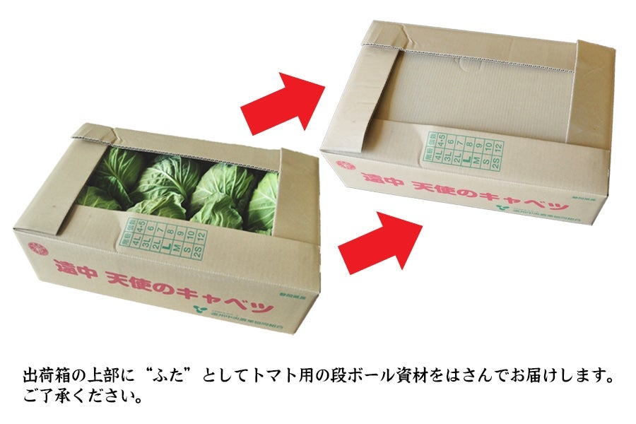 出荷箱の上部に“ふた”としてトマト用の段ボール資材をはさんでお届けする点、ご了承ください。