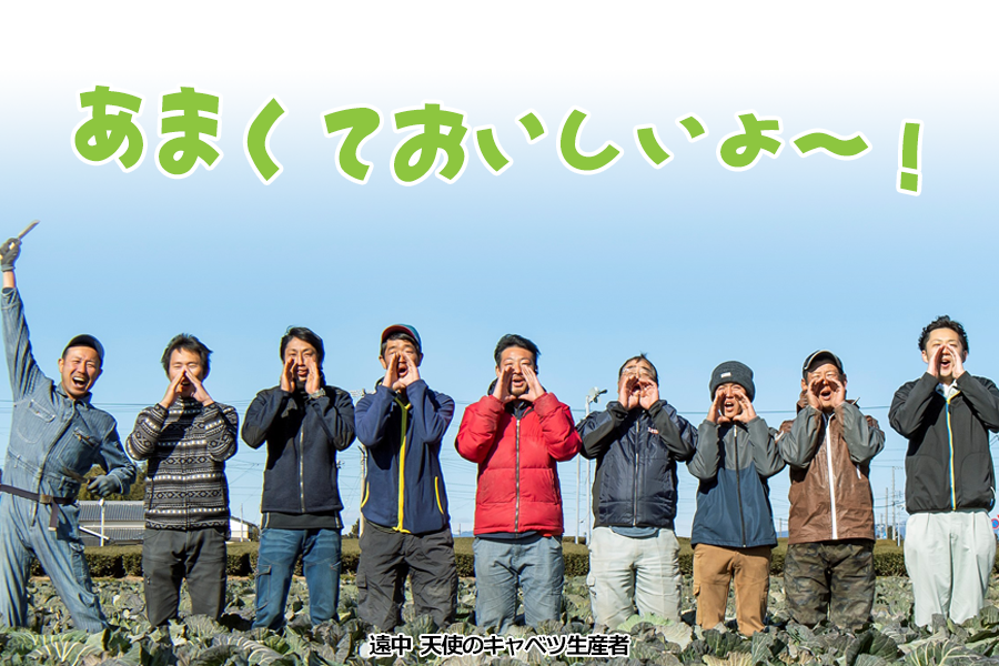 「遠中 天使のキャベツ」の生産者は30〜40代の若手が多く、合計6haほどの面積で一生懸命育てています。ここにしかない、おいしいキャベツ栽培をめざして取り組んでいます。