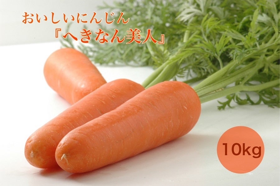 ----------------------- あまくておいしいニンジン 「へきなん美人」 JAあいち中央のニンジンは「へきなん美人」という名前のとおり、姿・形がキレイ!とっても美人です。鮮やかな紅色で、どれもそろってスーッと、絵にかいたように美しいのが特長。もちろん味もピカイチ。ニンジン独特の臭みが少なく、甘みがたっぷり。さらに、ベータカロチンが豊富に含まれています。収穫時期は秋が深まる11月下旬から春先の3月中旬ごろ。 ----------------------- おいしいニンジンの秘密は… JAあいち中央のニンジンのほとんどは、碧南市の南部、海に近い砂地の畑で作られています。畑は足が沈むようなさらさらとした砂地。この砂地の柔らかさこそ、碧南産ニンジンの甘さと美味さを作る秘訣なのです。 ----------------------- 作り手のこだわり 碧南人参部会で作るニンジンは、「防除基準を遵守し栽培履歴を記帳する」といった安全性の高いニンジン作りをしています。さらに、消費者のみなさんに安心・安全なニンジンをお届しようと、部会員全員が「エコファーマー」の称号を取得し、栽培方法についても日々、精進しています。そんな作り手の想いが食卓に届きますように…。 ----------------------- 碧南人参部会 へきなん美人は約130名の生産者が栽培しています。栽培地域や生産者を限定し、安心・安全なニンジン作りを、とことん追求しています。JAあいち中央 碧南人参部会と種苗会社、農家の3者が協力して、よりおいしく、よりヘルシーなニンジンを求めて改良を重ねた末、「へきなん美人」が誕生しました。「へきなん美人」のおいしさを多くの人に知ってもらいたいので、畑仕事の合間を縫って、PR活動も行っています。イベント会場などで、「へきなん美人」100%のニンジンジュースを飲んでいただき、「へきなん美人」の自然な甘さやスッキリ感を味わっていただいています。お返しに『おいしかった〜!!』の笑顔をいただき、明日の糧にしています。 ★「へきなん美人」は当部会の独自ブランドです。  類似品にご注意ください ----------------------- おいしいたべかた きめが細かく、柔らかで、食感がいいので、サラダやジュースにして甘みを味わっていただくのがおススメ。冬の寒い季節は、さらにニンジンの甘みが増すので、煮物に使うと味わいが深まります。 スティック状にして、食べても甘くて美味しいですよ☆ ----------------------- ★愛知初!2015年“野菜ソムリエ サミット”にて二つ星を受賞!★ ◎野菜ソムリエサミットとは?  野菜ソムリエが評価員となり、全国各地からエントリーされる野菜・果物の中から食味の優れたものを選出し、表彰している。評価のポイントは「おいしさ」で、獲得した点数に応じて三ツ星を最高ランクに賞が与えられる。 ◎へきなん美人が評価されたポイント ・とにかく甘い! ・味が濃い。歯切れもよく、噛めば噛むほど甘い! ・甘くほどよいニンジン臭さもある美味しさ。特にジュースが驚き。 ・すべてがバランスよく整っているニンジン。 ★下記7道県につきましては、大変申し訳ございませんが配送の都合上ご注文をお受けしておりません。  【北海道、青森県、岩手県、秋田県、宮城県、山形県、福島県】 ★1月中旬より発送開始予定です! ★集荷日の都合により注文日によっては発送までお時間をいただく場合がございます(原則1週間以内に発送いたします)。 ★配達日の指定はお受けできません。 ★のしはお受けできません。 ★代引き決済はご利用いただけません。