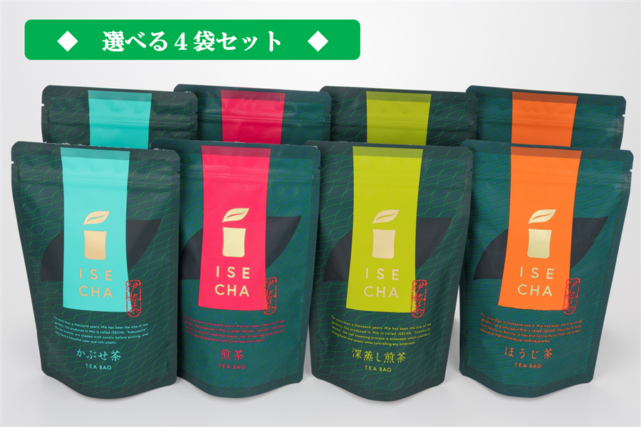 伊勢茶をお手軽においしく!深蒸し煎茶・かぶせ茶・煎茶の3種類からお好きなお茶を4袋選べるお好みセットです!