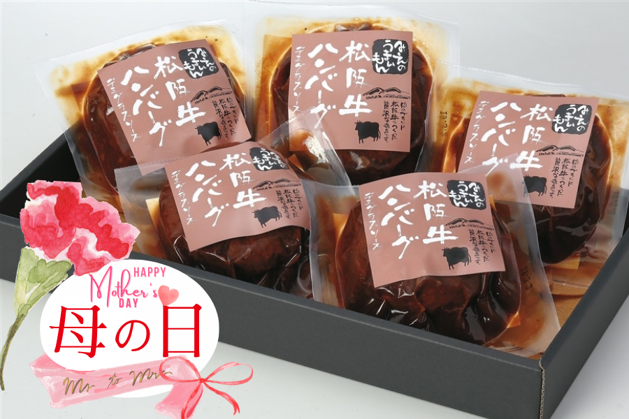 美味しい三重県産の松阪牛ハンバーグに、母の日のカードを添えてお届けします♪