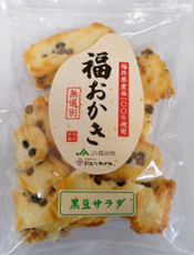 原材料:水稲もち米(福井県産100%)、植物油脂、黒大豆、食塩、たん白加水分解物、酵母エキス、デキストリン、香辛料/調味料(アミノ酸等)