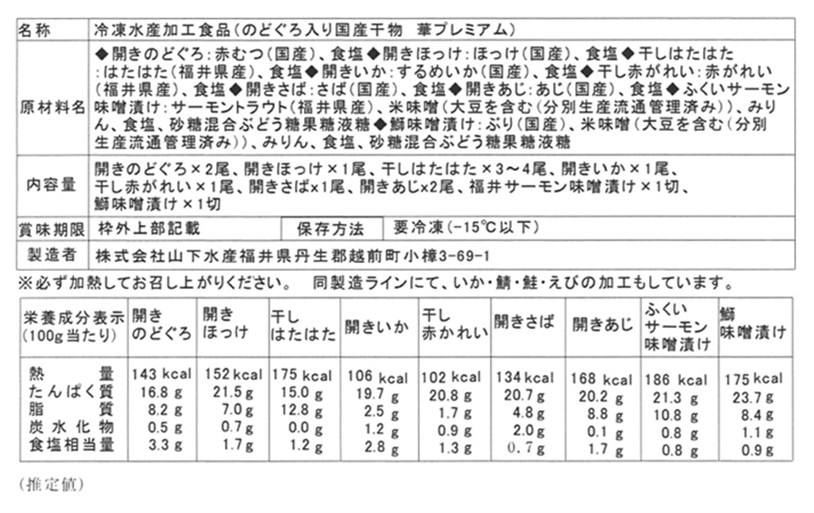 冷凍水産加工食品(のどぐろ入り国産干物 華プレミアム)