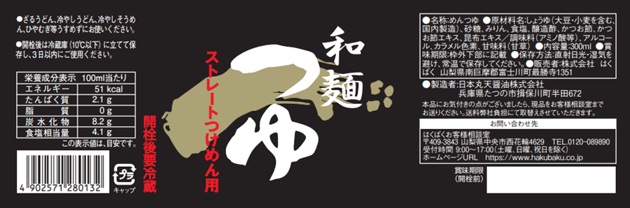 ざるうどん、冷やしうどん、冷やしそうめん、ひやむぎ等うすめずにお使いください。
