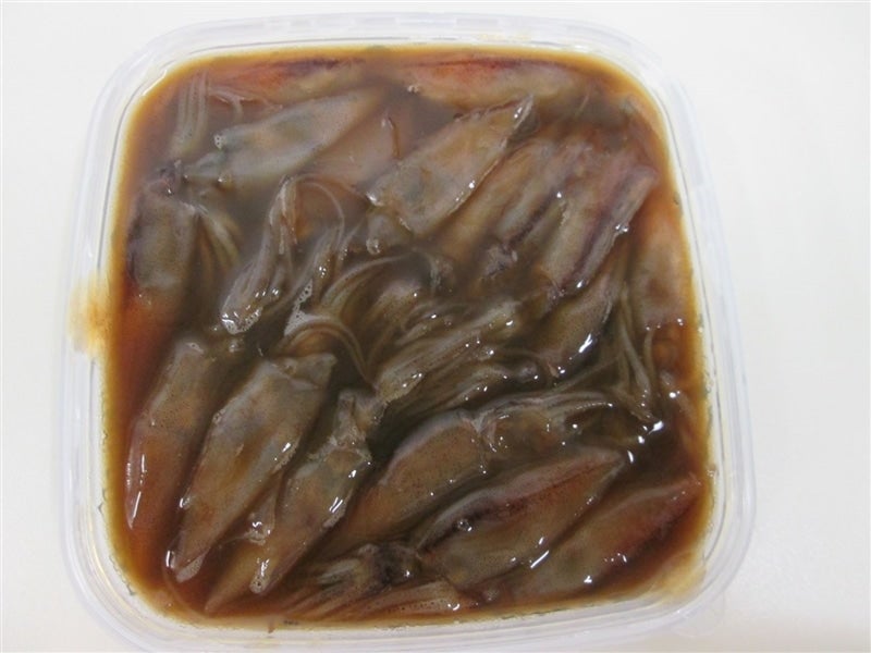 原材料:ほたるいか(福井県産)、こいくちしょうゆ、発酵調味料/酒精、甘味料、調味料(アミノ酸等)、カラメル色素、保存料(パラオキシ安息香酸)