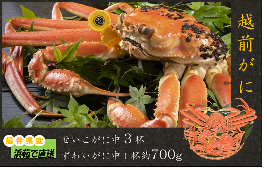 ◆一般的に「越前がに」とは福井県内で水揚げされたズワイガニのオスのことを指します。