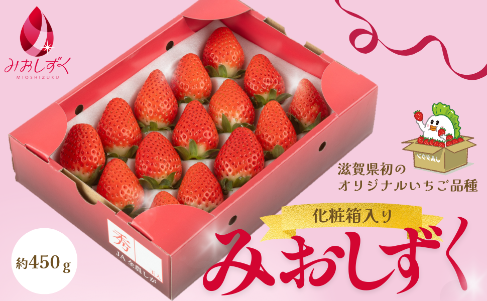 適度な酸味で際立つさわやかな甘みが特徴の「みおしずく」は滋賀県初のオリジナルいちご品種です。