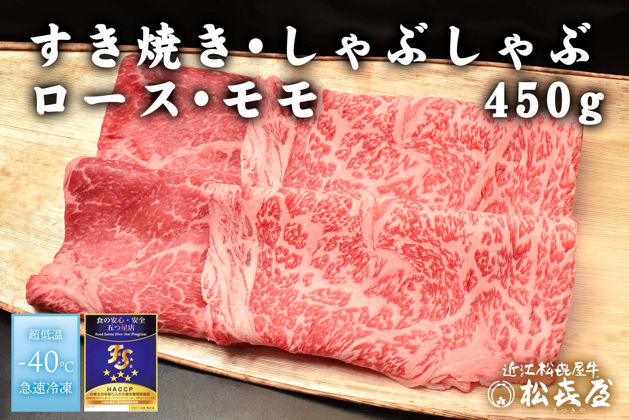 【お歳暮】近江松喜屋牛 すき焼き・しゃぶしゃぶ用ロース・モモ 3人用450g
