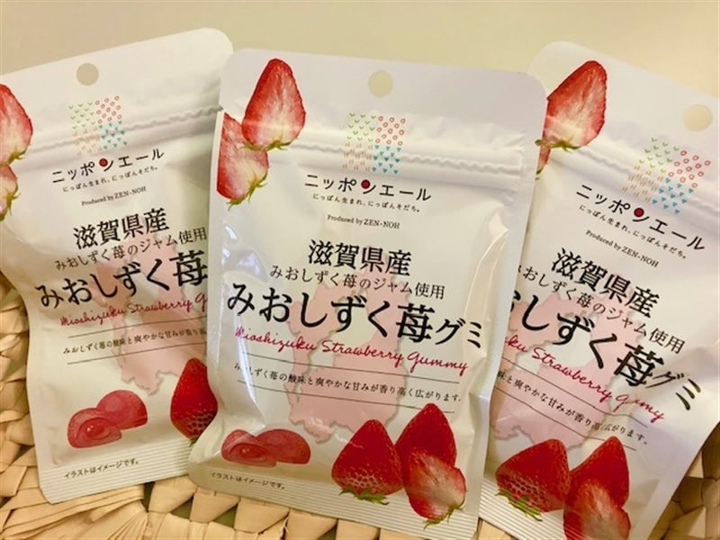 ◎ 上記に加え、滋賀県初のオリジナルいちご品種「みおしずく」を使った【みおしずく苺グミ】が1袋入っています。