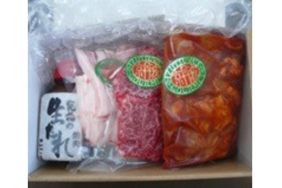 内容量:@丹波牛焼肉:100gA丹波高原豚バラ焼肉:100gB丹波黒どり焼肉:100gC国産牛味付ホルモン:100gD焼肉たれ:190ml